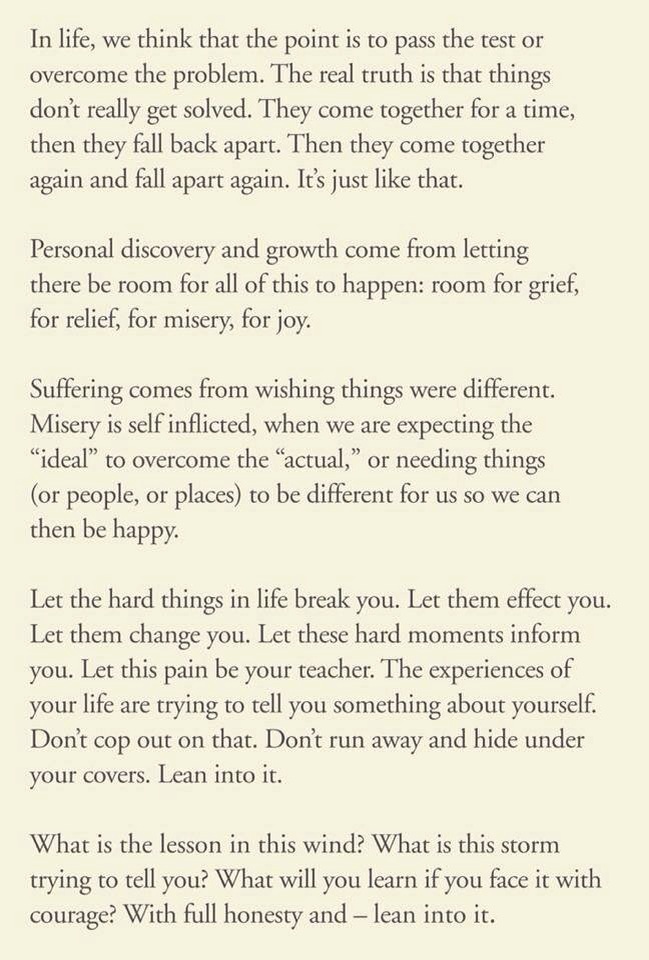 Perfectly said. Sometimes it is difficult to see life for what it is, especially when we are fed so much inspirational, well meaning but ultimately unhelpful advice.