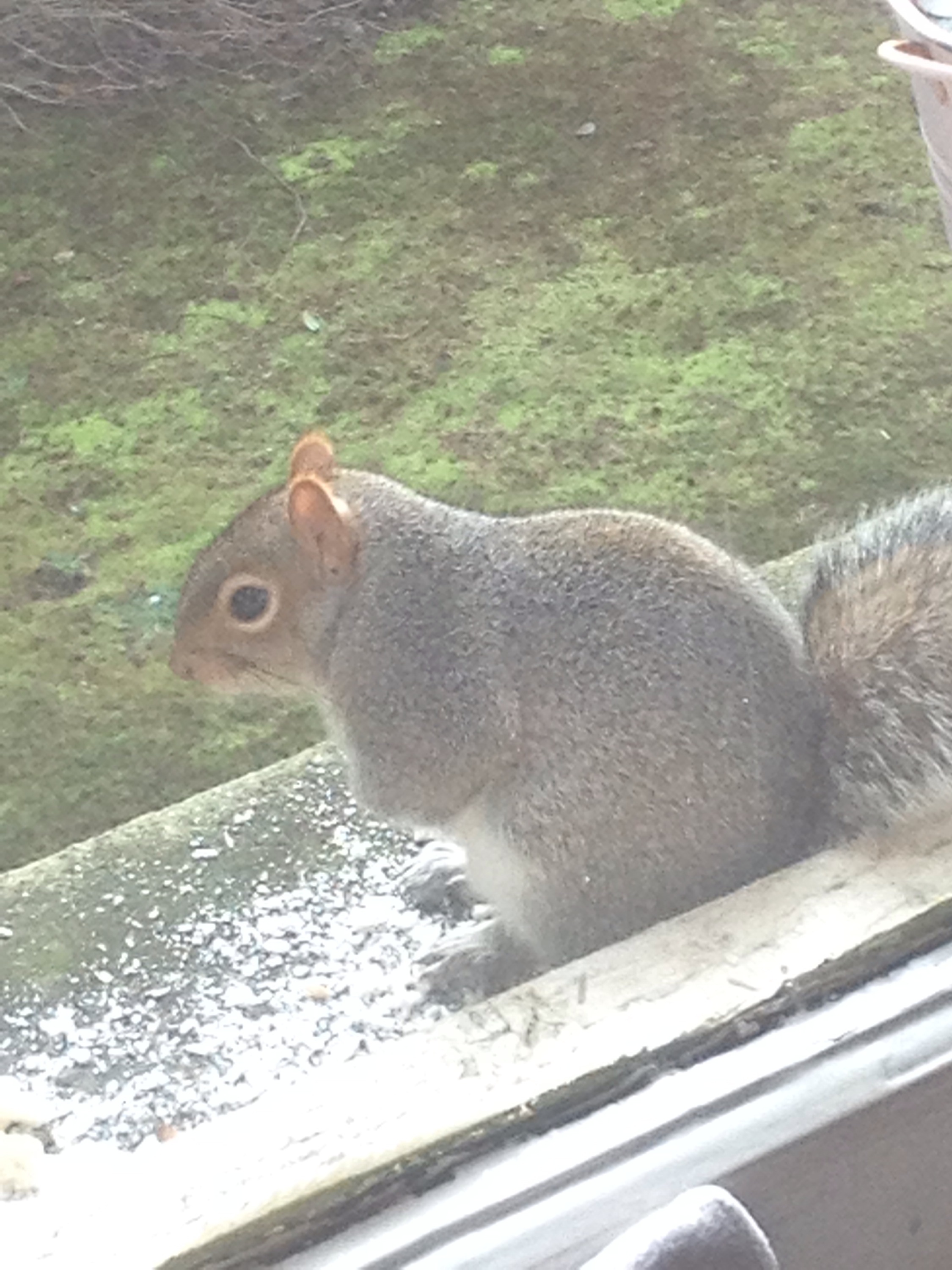 I could not sleep last night! I had one if those nagging headaches that drives you mad, pills do not work because it is caused by a niggling thought that won’t go away. I lay there staring at the ceiling trying to work out what was bothering me when there was a scraping sound at my window. My friend the squirrel was back.