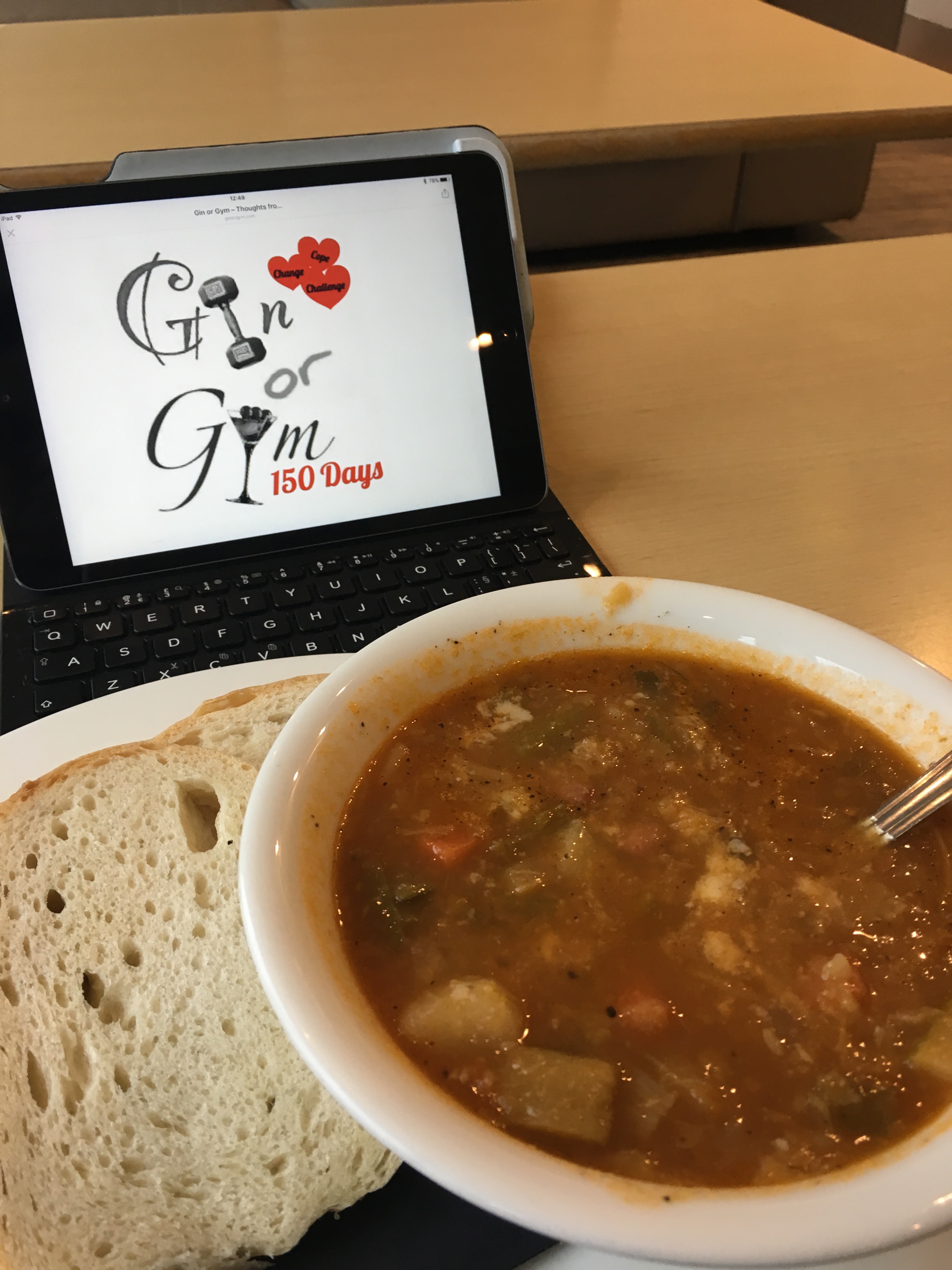 After a restorative bowl of minestrone from Caffe Parma, a wee bit of Blog writing and a chill out watching some tennis, things do feel slightly better. But this is just the start, tomorrow is spinning at Boiler Room Fitness and I have a feeling it maybe into the reserve tank with the red light flashing.