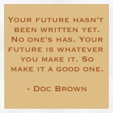 Some one sent me this quote when I became unemployed in December last year. I was stuck in the what the heck, how will I survive state of mind when this dropped into my inbox. At first I filed it under the keep to focus on for a rainy day folder but two days later I sat down to watch the film and found myself in deep thought. Even as Michael J shot his car into the future, I found myself shifting my own gears and thinking why sit still? Why not use that extra bit of kit and move on? It did all get parked again though and it wasn’t till today that this quote reversed back into my head.